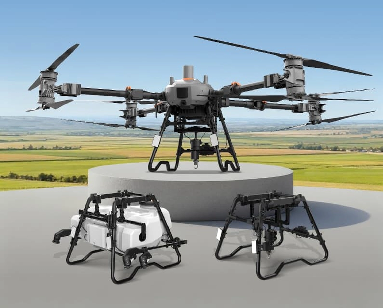 Enthalten im Preis Drohne mit Sprühtank, zwei Ladegeräten, sechs Akkus